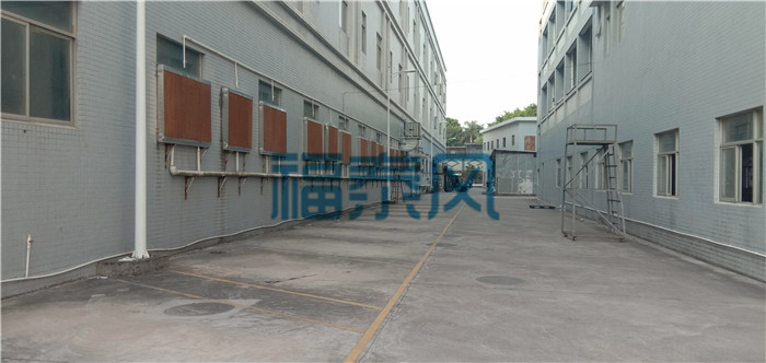 2.降溫水簾系統(tǒng),對(duì)車(chē)間外空氣二次制冷進(jìn)入車(chē)間降溫。車(chē)間安裝負(fù)壓風(fēng)機(jī)的對(duì)面或者側(cè)面墻壁的窗戶(hù)上安裝降溫水簾系統(tǒng),把進(jìn)入車(chē)間內(nèi)的補(bǔ)充空氣經(jīng)過(guò)降溫水簾二次降溫,變成溫度更低的空氣被負(fù)壓風(fēng)機(jī)強(qiáng)行引入到車(chē)間內(nèi)降溫,此方法與負(fù)壓風(fēng)機(jī)配合使用降溫效果好,需要注意的是水簾降溫系統(tǒng)空氣的量和速度要足夠補(bǔ)充車(chē)間內(nèi)高溫悶熱空氣排出的量和速度,而且要做好車(chē)間的密封,盡量保證進(jìn)入車(chē)間的空氣經(jīng)過(guò)降溫水簾系統(tǒng)。